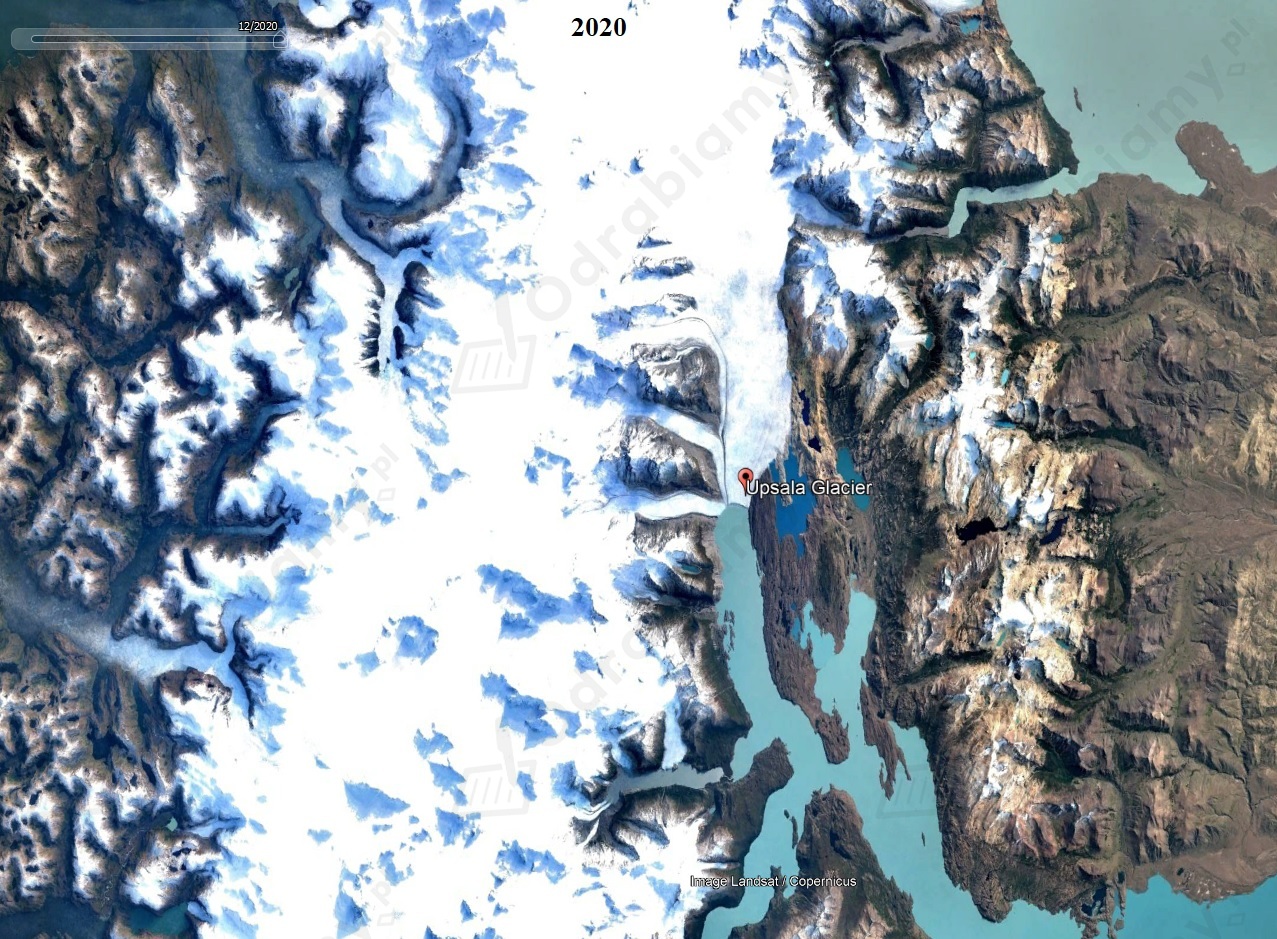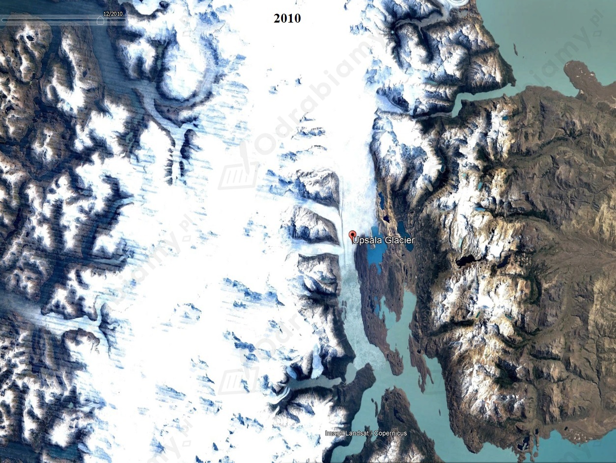 Poniżej przedstawiono zdjęcia lodowca Uppsala znajdującego się w Chile i Argentynie: