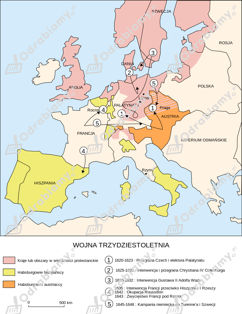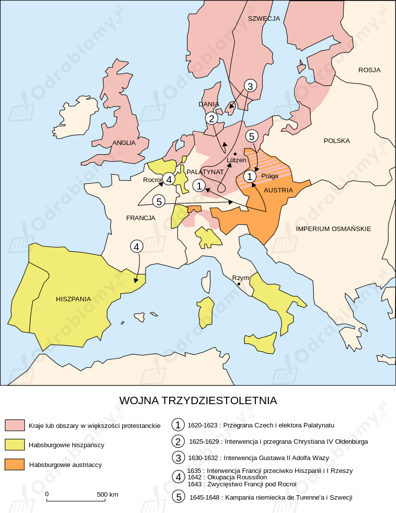 Wojna trzydziestoletnia toczyła się na obszarach: