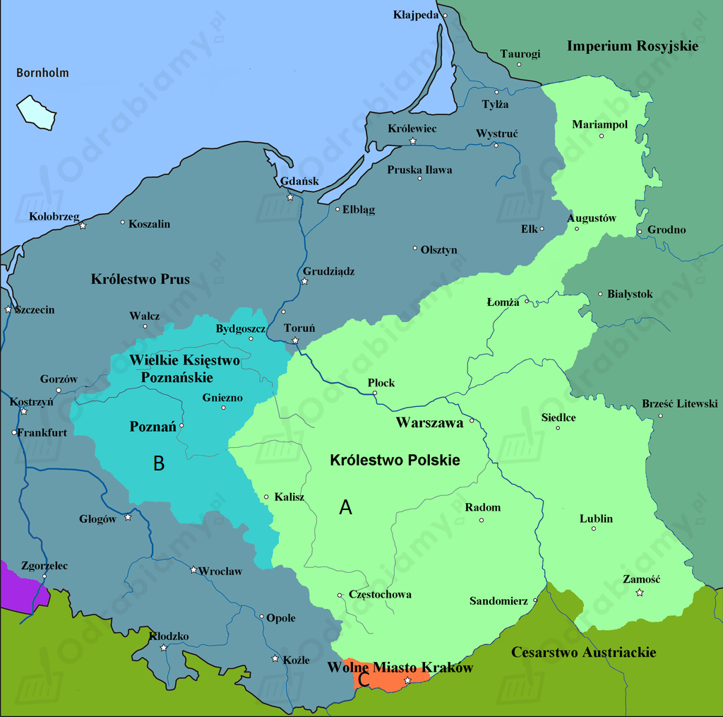 X oznacza wyrażenia, które opisują sytuację Polaków w Wielkim Księstwie Poznańskim w latach 1815-1831.