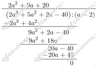 Liczba 2 jest pierwiastkiem wielomianu w, więc wielomian w jest podzielny przez dwumian (a-2).