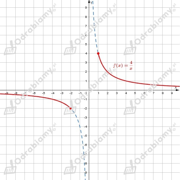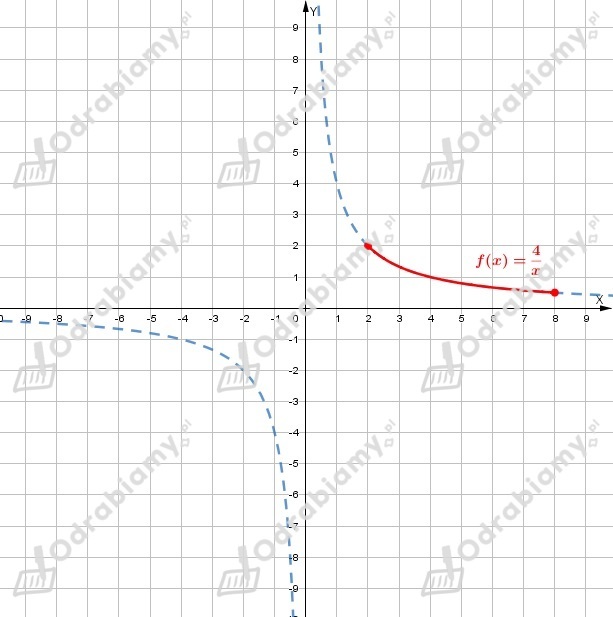 a) Na podstawie wykresu w dziedzinie R\{0} szkicujemy wykres funkcji f w dziedzinie D=<2, 8>: