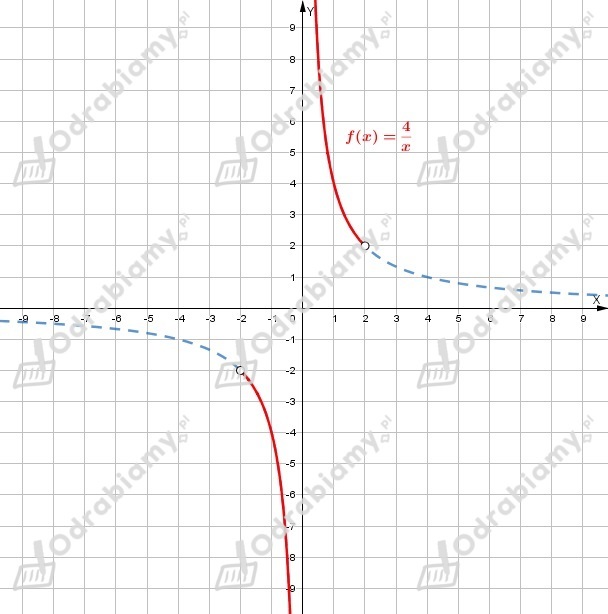b) Na podstawie wykresu w dziedzinie R\{0} szkicujemy wykres funkcji f w dziedzinie D=(-2, 0)∪(0, 2):