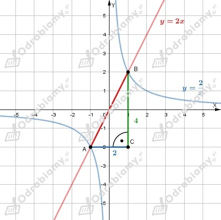 Zatem prosta i hiperbola przecinają się w punktach A(-1, -2) i B(1, 2).