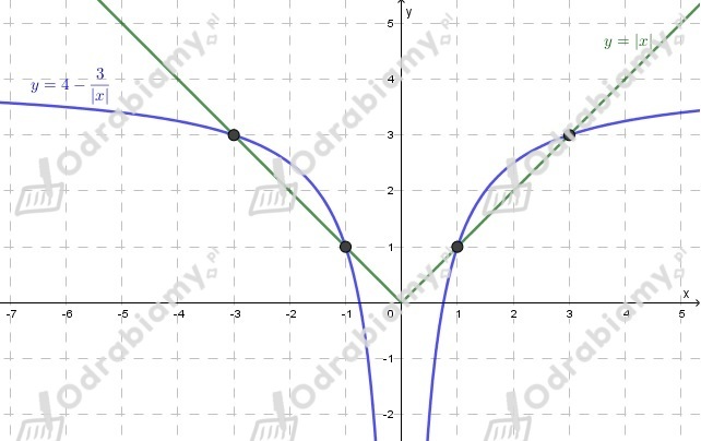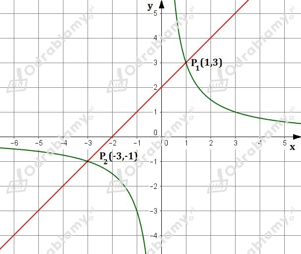 Punkty przecięcia wykresów to P1=(1,3) oraz P2=(-3,-1).