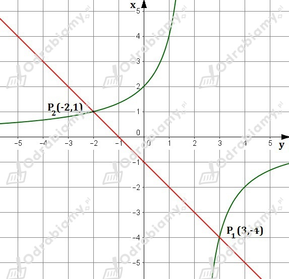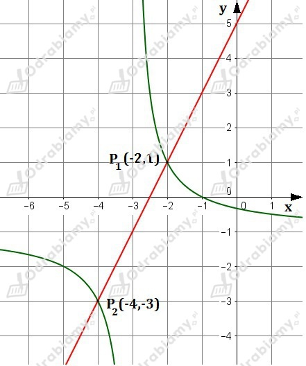 Punkty przecięcia wykresów to P1=(-2,1) oraz P2=(-4,-3).