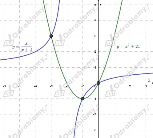 Punkty przecięcia wykresów to P1=(0,0), P2=(-1,-1) oraz P3=(-3,3).