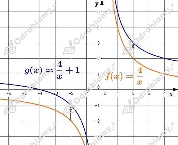 Wykres funkcji g(x) otrzymujemy przez przesunięcie wykresu funkcji f(x) o wektor [0,1], czyli o 1 jednostkę w górę.