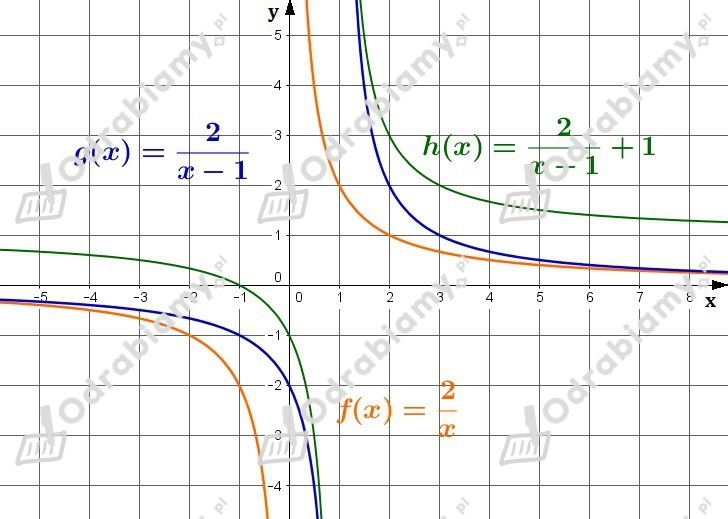 Wykres funkcji h(x) powstaje przez przesunięcie wykresu funkcji f(x) o wektor [1,1], czyli o 1 jednostkę w prawo i 1 jednostkę w górę.