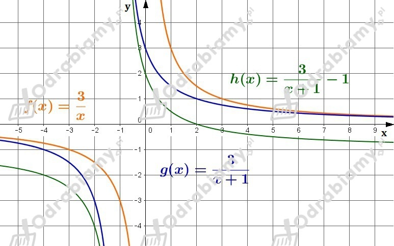 Wykres funkcji h(x) powstaje przez przesunięcie wykresu funkcji f(x) o wektor [-1,-1], czyli o 1 jednostkę w lewo i 1 jednostkę w dół.