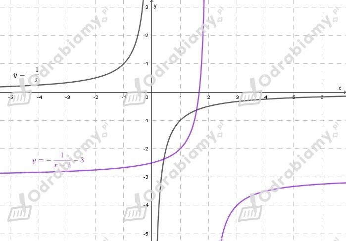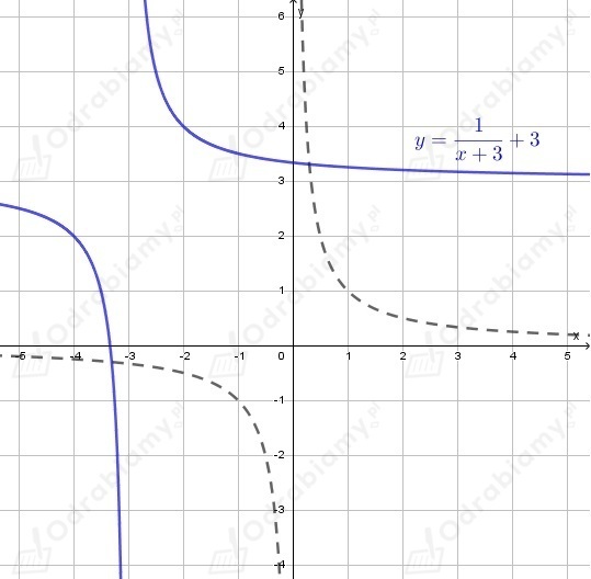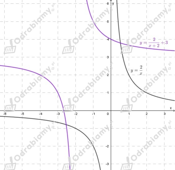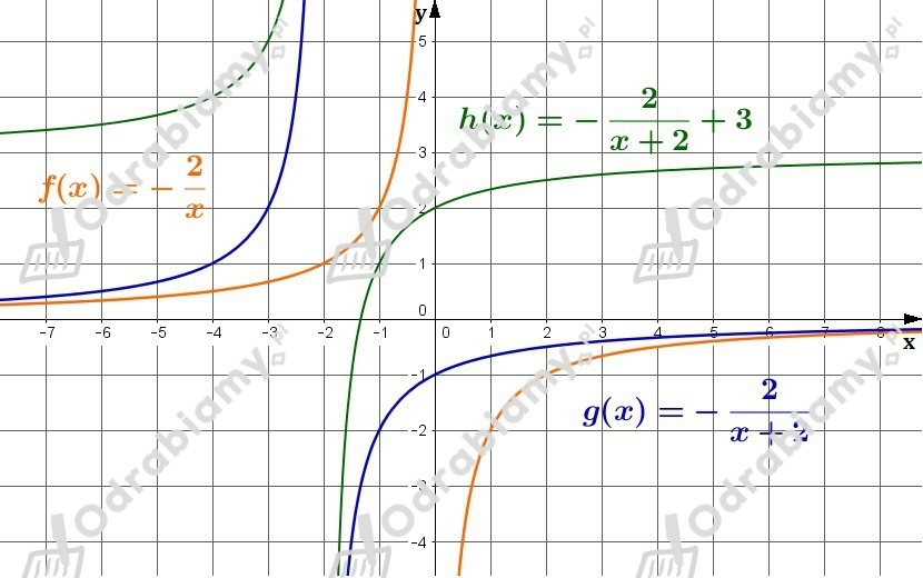 Wykres funkcji h(x) powstaje przez przesunięcie wykresu funkcji f(x) o wektor [-2,3], czyli o 2 jednostki w lewo i 3 jednostkę w górę.