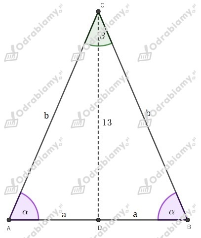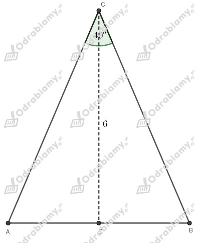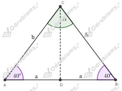 Zauważmy, że trójkąt ABC to trójkąt równoramienny o podstawie AB, zatem kąty przy podstawie mają równe miary.