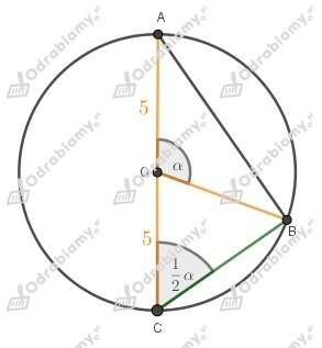 Zauważmy, że kąt CBA to kąt prosty, ponieważ jest oparty na średnicy.