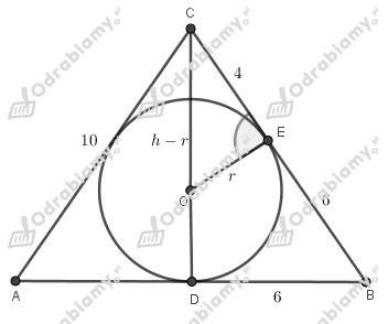 Obliczmy z twierdzenia Pitagorasa wysokość tego trójkąta: