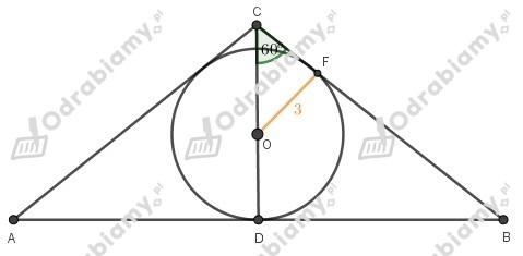 Z funkcji trygonometrycznych w trójkącie OFC mamy: