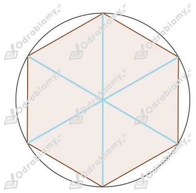 Zauważmy, że pole tego sześciokąta to pole sześciu trójkątów równobocznych o boku długości