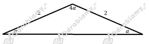 Zauważmy, że trójkąt jest równoramienny, więc kąt ma miarę