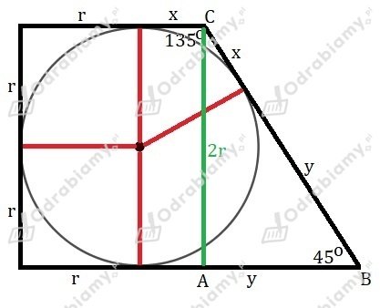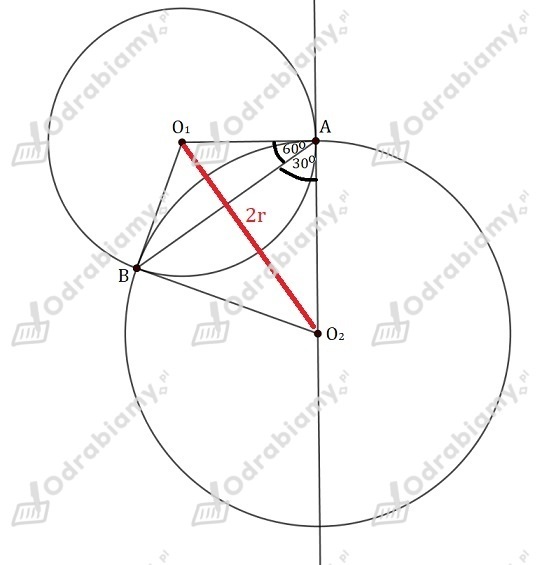 Zauważmy, że kąt jest kątem prostym, więc jest średnicą nowego okręgu.