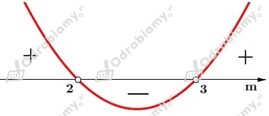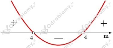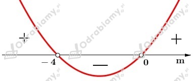 Iloczyn pierwiastków równania jest najmniejszy, gdy funkcja y=f(m) przyjmuje najmniejszą wartość. Współczynnik przy m2 jest dodatni, więc ramiona paraboli są skierowane do góry i funkcja przyjmuje najmniejszą wartość w wierzchołku paraboli, o ile należy on do dziedziny funkcji.