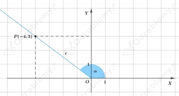 Z treści zadania wiemy, że do ramienia końcowego kąta 𝛼 należy punkt P(-4,3).