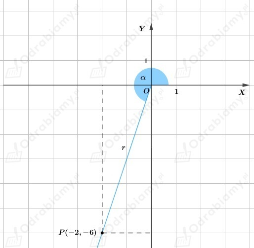 Z treści zadania wiemy, że do ramienia końcowego kąta 𝛼 należy punkt P(-2,-6).