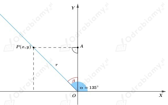 Z treści zadania wiemy, że 𝛼=135º.