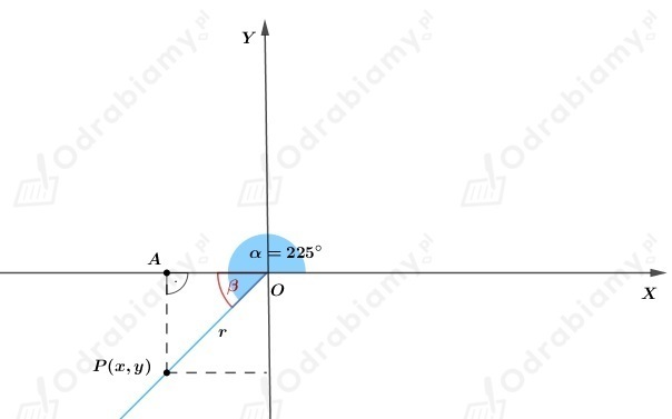 Z treści zadania wiemy, że 𝛼=225º.