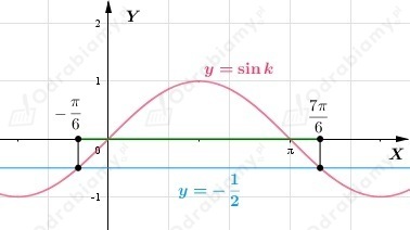Z wykresu funkcji trygonometrycznej sinus i tabelki wartości odczytujemy, że