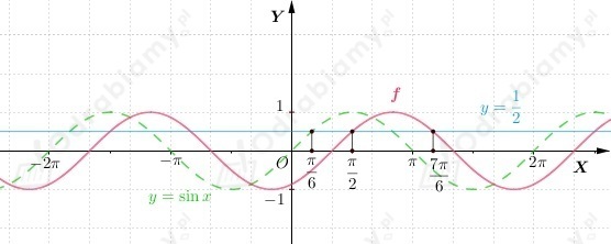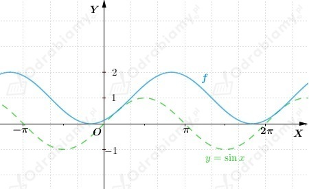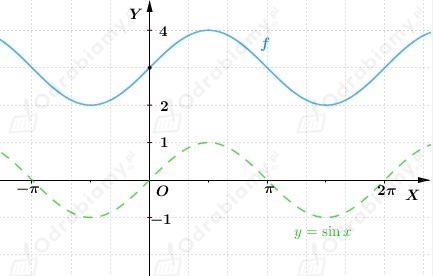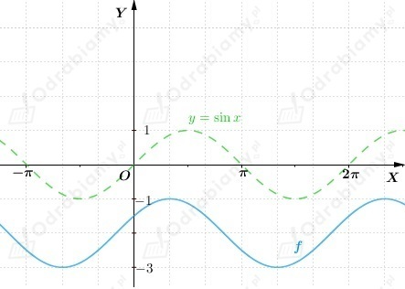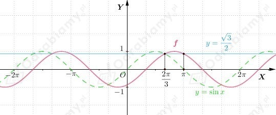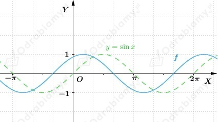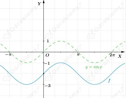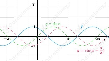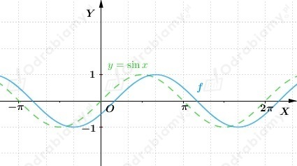 Wykres funkcji f otrzymujemy przez przesunięcie wykresu funkcji y=sinx o wektor