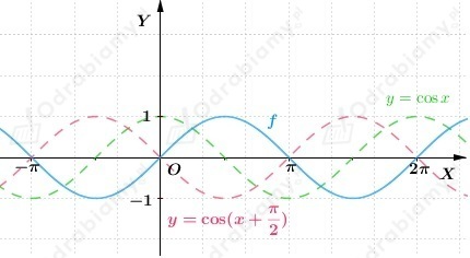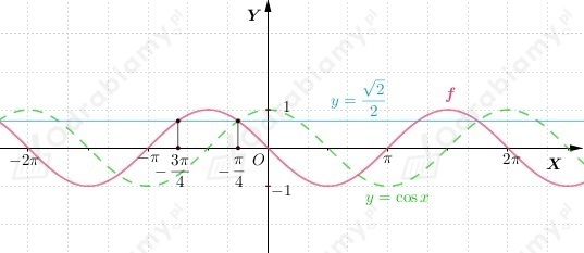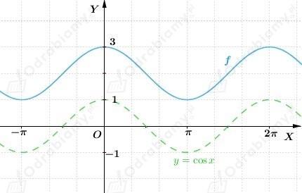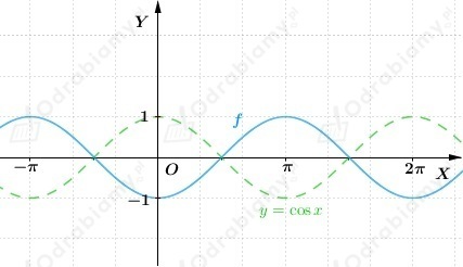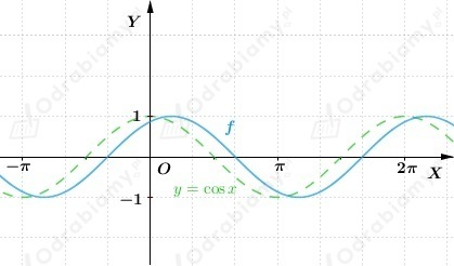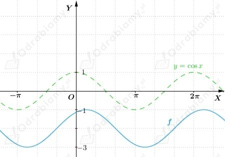 Wykres funkcji f otrzymujemy przez przesunięcie wykresu funkcji y=cosx o wektor