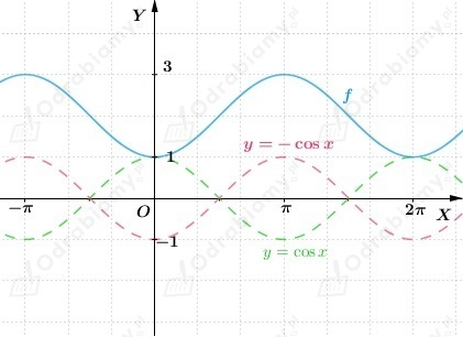 Przesunięcie wykresu funkcji wzdłuż osi OX oraz odbicie symetryczne względem osi OX nie zmieniają zbioru wartości funkcji y=cosx.