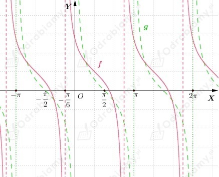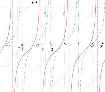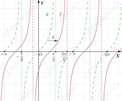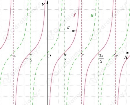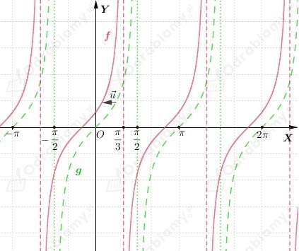 Wykres funkcji f powstaje przez przesunięcie wykresu funkcji g(x)=tgx o wektor