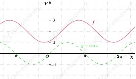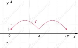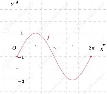 Naszkicujmy wykres funkcji f w przedziale ⟨0; 2𝜋〉