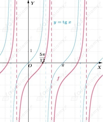 Wykres funkcji f powstaje przez przesunięcie wykresu funkcji y=tgx o wektor [𝜋/6, -1]