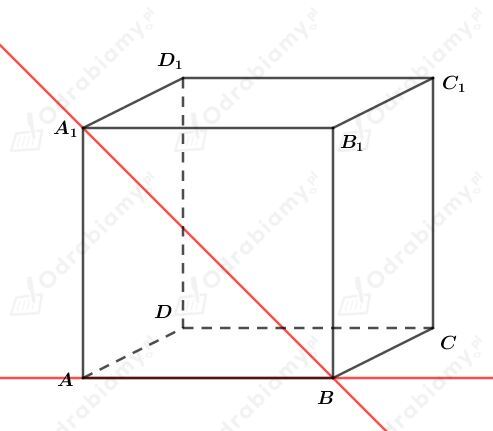 Proste AD i BC są prostopadłe do prostej A1B. Skoro proste AD i BC są prostopadłe do prostej AB, która jest rzutem prostokątnym A1B na płaszczyznę ABCD, to też są prostopadłe do prostej A1B.