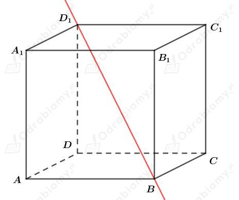 Zapiszmy, które proste przechodzące przez dwa wierzchołki sześcianu są prostopadłe do prostej BD1. Mamy:
