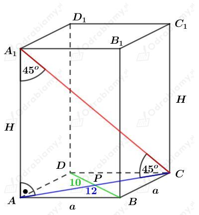 Zauważmy, że trójkąt ACA1 jest równoramiennym trójkątem prostokątnym, więc