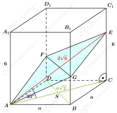Rozważmy trójkąt prostokątny GPS. Korzystając ze związku między długościami boków w trójkącie o kątach 30o, 60o, 90o mamy: