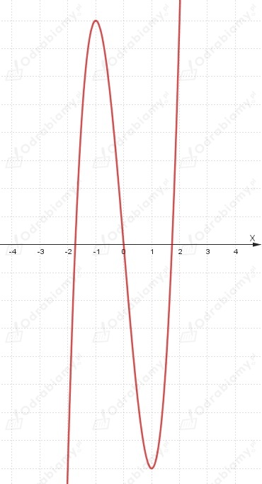 Wobec tego funkcja f osiąga maksimum w x=-1 oraz minimum w x=-2 oraz x=2.