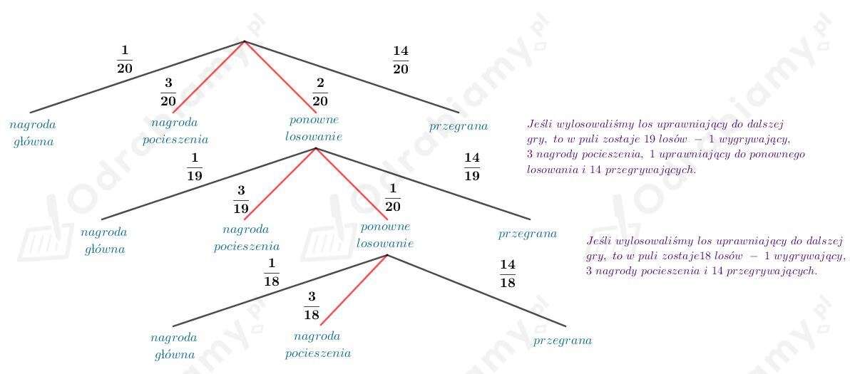 Przebieg losowania ilustrujemy za pomocą drzewa: