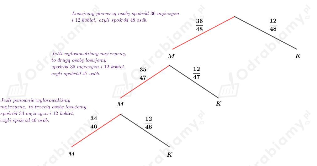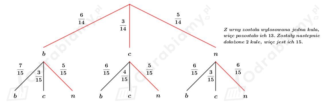Przedstawiamy na drzewie ilustrację doświadczenia opisanego w treści zadania: